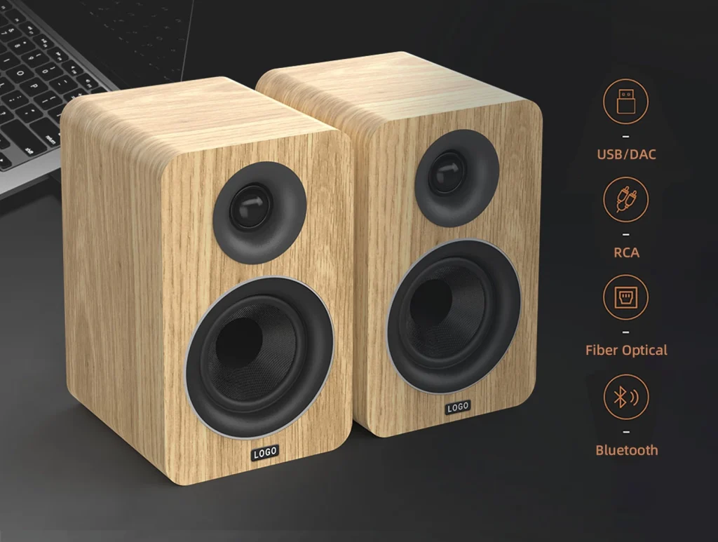 2.0‑channel HI‑FI Bluetooth bookshelf speakers deliver clean, clear sound. With 50W high‑power output, they provide high‑quality audio for a cinema‑grade listening experience. The main unit is equipped with multiple input interfaces—including RCA, optical, and USB—and also supports Bluetooth wireless connectivity, making it compatible with a wide range of input devices and highly expandable.